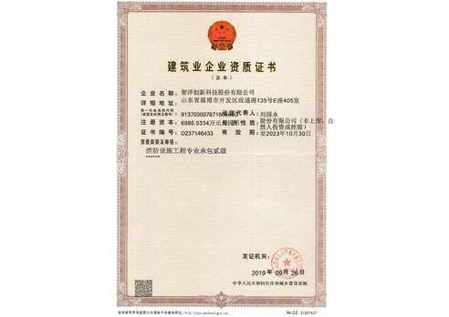 消防设施工程专业承包贰级--建筑业企业资质证书